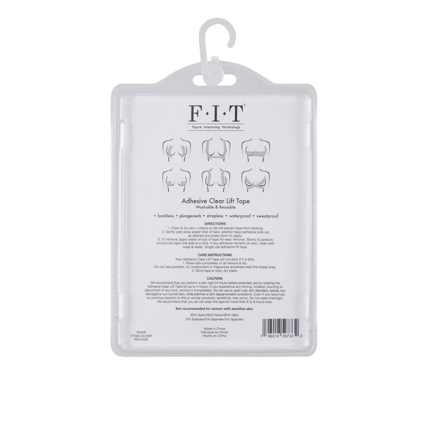 Get the lift you love-without the bra. Our FIT Clear Lift Tape is your go-to solution for a naturally lifted, sculpted look under any outfit. Designed to work seamlessly with plunging necklines, off-shoulder styles, backless dresses, and even those daring bra-less fits, this tape shapes and supports while staying out of sight. Crafted with skin-friendly cotton and eco-conscious adhesive, it sticks securely without irritating your skin. Lightweight, breathable, and ultra-versatile-this is the tape that works with your body and your wardrobe.