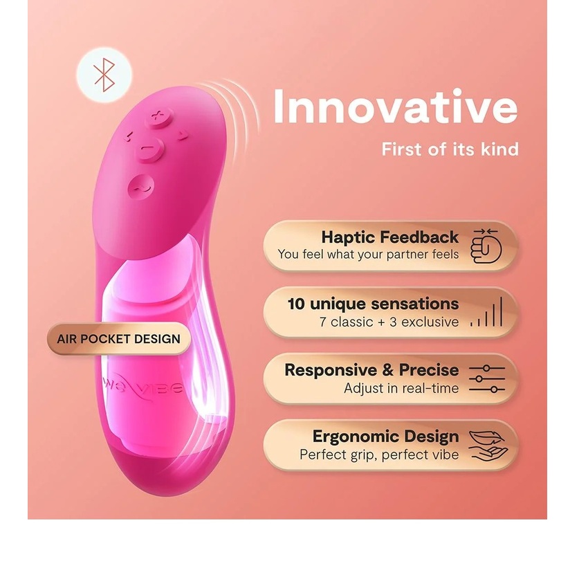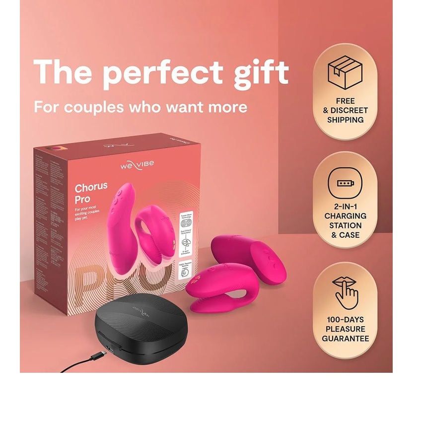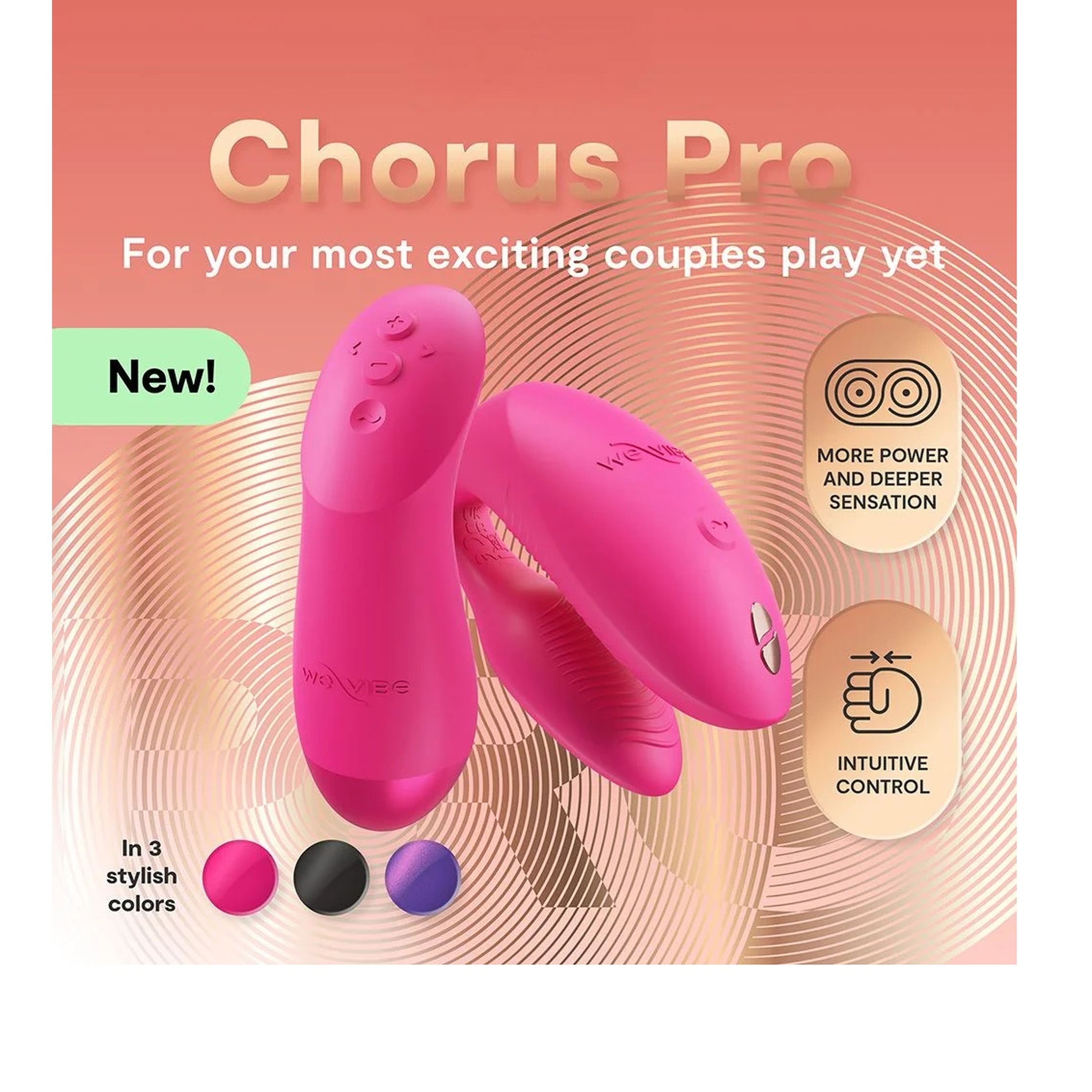 Chorus Pro is We-Vibe’s most powerful couples’ vibrator, designed for deeper sensations and stronger connection. With Fusion Wave Technology, it delivers rhythmic clitoral and G-spot stimulation. The Haptic Squeeze Remote responds to your touch, letting you adjust intensity with a squeeze while feeling the same vibrations in your hand, creating intuitive, real-time shared pleasure.